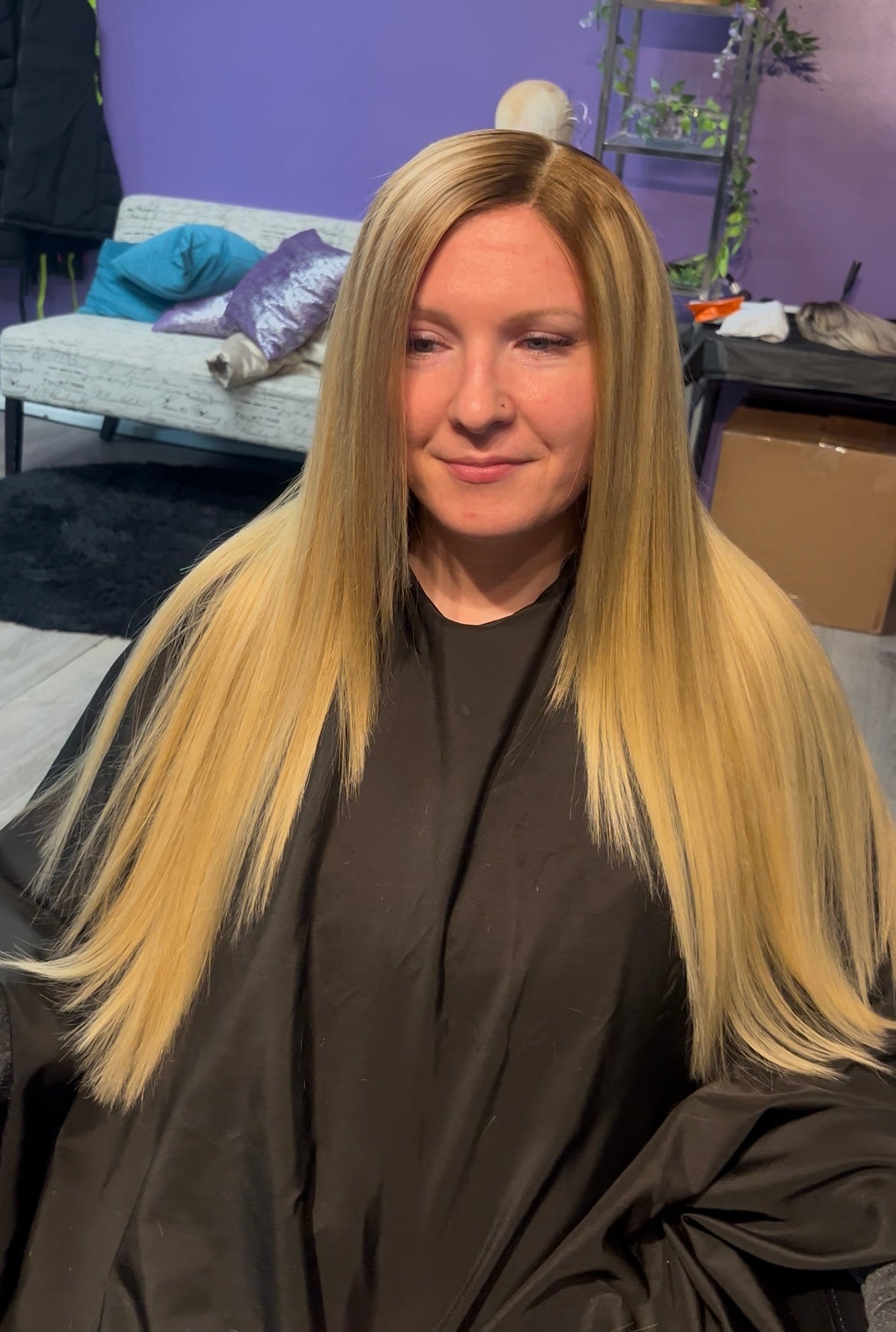 Custom made, ready to wear, 5x5 HD lace closure, 22 inch middle part with face frame, 613 w/ shadow roots and low lights, 180% density, pre-plucked, and styled.